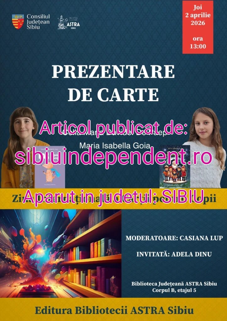 Sursa: https://sibiuindependent.ro/2026/03/30/eveniment-literar-dedicat-copiilor-la-biblioteca-astra-sibiu/