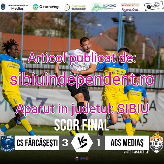 ACS Mediaș a cedat în deplasare, scor 1-3, în fața formației Vulturii Fărcășești, într-un meci din Liga a III-a, Seria a VI-a, după un început promițător, dar în care gazdele s-au dovedit mai eficiente.