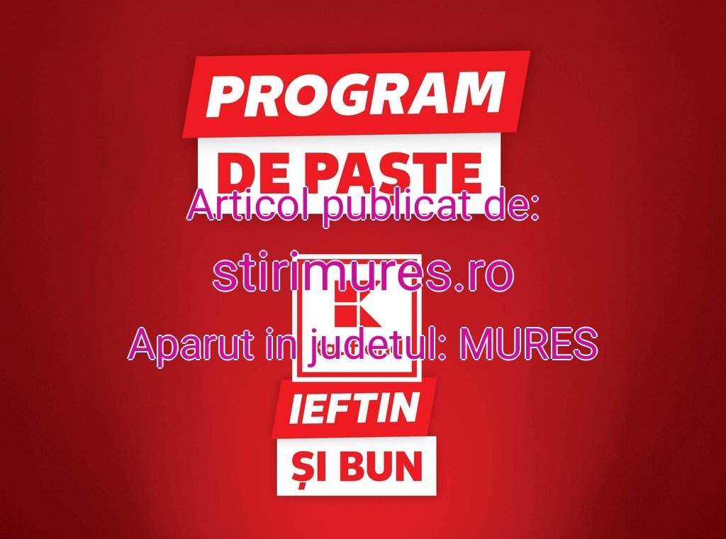 Kaufland România anunță programul de funcționare al magazinelor din întreaga țară, pentru perioada sărbătorilor de Paște.Astfel, rețeaua Kaufland România va funcționa după următorul program:· În perioada 06 – 10 aprilie, magazinele Kaufland vor fi deschise începând cu ora 07:00, cu excepția hipermarketului din incinta Promenada Mall Sibiu, care se va deschide la 09:00. Ora de închidere variază între 21:30 și 23:00, în funcție de locație.· Sâmbătă, 11 aprilie, majoritatea magazinelor Kaufland vor funcționa între orele 07:00 și 18:00. Magazinul din Promenada Mall Sibiu se aliniază la programul centrului comercial. Excepție fac magazinele din Miercurea Ciuc, Sovata, Odorheiu Secuiesc, Târgu Secuiesc și Gheorgheni, care vor avea program extins până la ora 21:30, respectiv magazinul din Sfântu Gheorghe, până la ora 22:30.· În prima zi de Paște, duminică, 12 aprilie, toate magazinele Kaufland vor fi închise.· În a doua zi de Paște, luni, 13 aprilie, magazinele vor avea program scurt, între orele 09:00 și 18:00. Excepție fac locațiile din orașele menționate anterior, care vor funcționa după programul extins. De asemenea, magazinul din incinta Promenada Mall Sibiu va fi deschis între orele 09:00 și 22:00.În perioada Paștelui catolic, magazinele Kaufland din Sfântu Gheorghe, Gheorgheni, Miercurea Ciuc, Odorheiu Secuiesc, Sovata și Târgu Secuiesc vor funcționa după un program special, astfel: