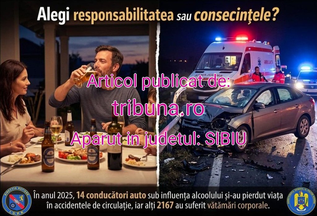 Reprezentanții IPJ Sibiu atrag atenția că alcoolul afectează semnificativ capacitatea de a conduce, diminuând atenția, reflexele și coordonarea. În aceste condiții, șoferii pot avea reacții întârziate și pot lua decizii periculoase în trafic.