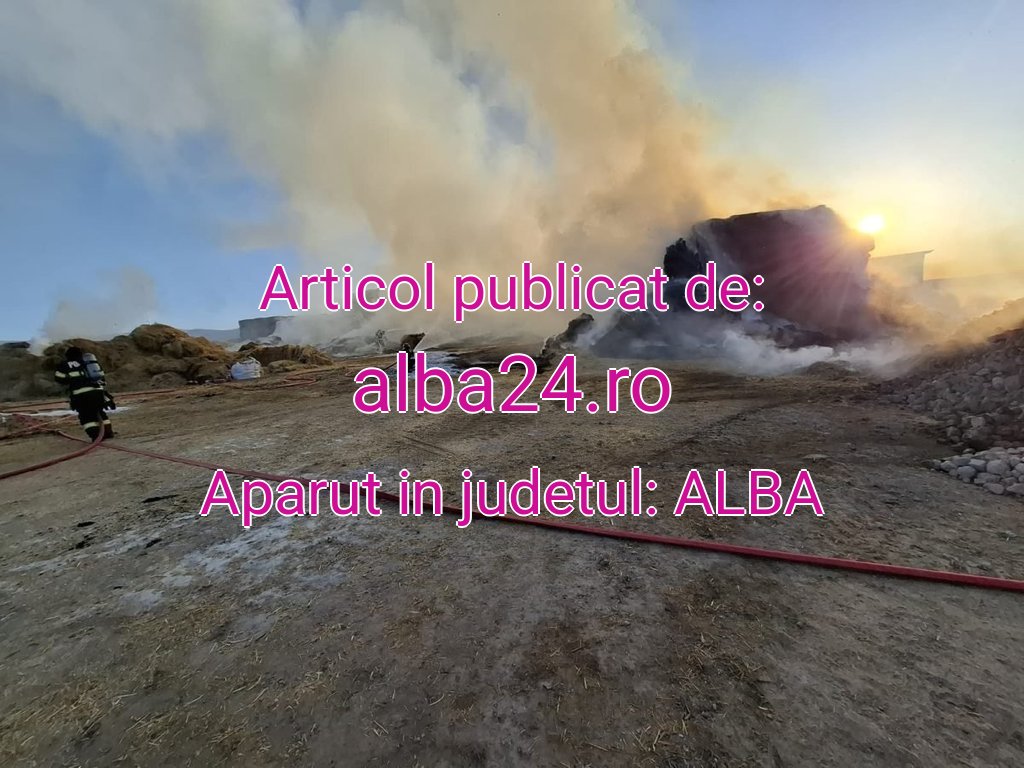 Un incendiu puternic a izbucnit sâmbătă după-amiaza în localitatea Gârbova. Focul a cuprins circa 300 de baloți de paie. Pentru stingerea focului intervin pompieri din Alba și Sibiu, cu trei autospeciale.